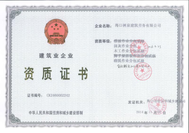 ??跇淙ㄖ趧沼邢薰境闪⒂?011年,公司位于海口,其前身是一家專業建筑施工隊,自2004年即開始在海南從事建筑勞務施工。自成立至今,公司已經擁有一支科學管理、質量過硬、能打硬仗,搶工期的專業隊伍。能獨立承擔大中型工業與民用建筑 、室內外裝修、各類機電設備安裝工程。代表工程有海口濱海華庭、三亞時代海岸T01/02/04/05棟高層、合肥東海花園二期、陵水富力灣B區高層、三亞金中海(酒店)、瓊海大印經典花園、??诃h球海景大酒店(四星級酒店,在建中)、陵水珍珠大廈(五星酒店)、海口萬達廣場、美蘭機場二期。
